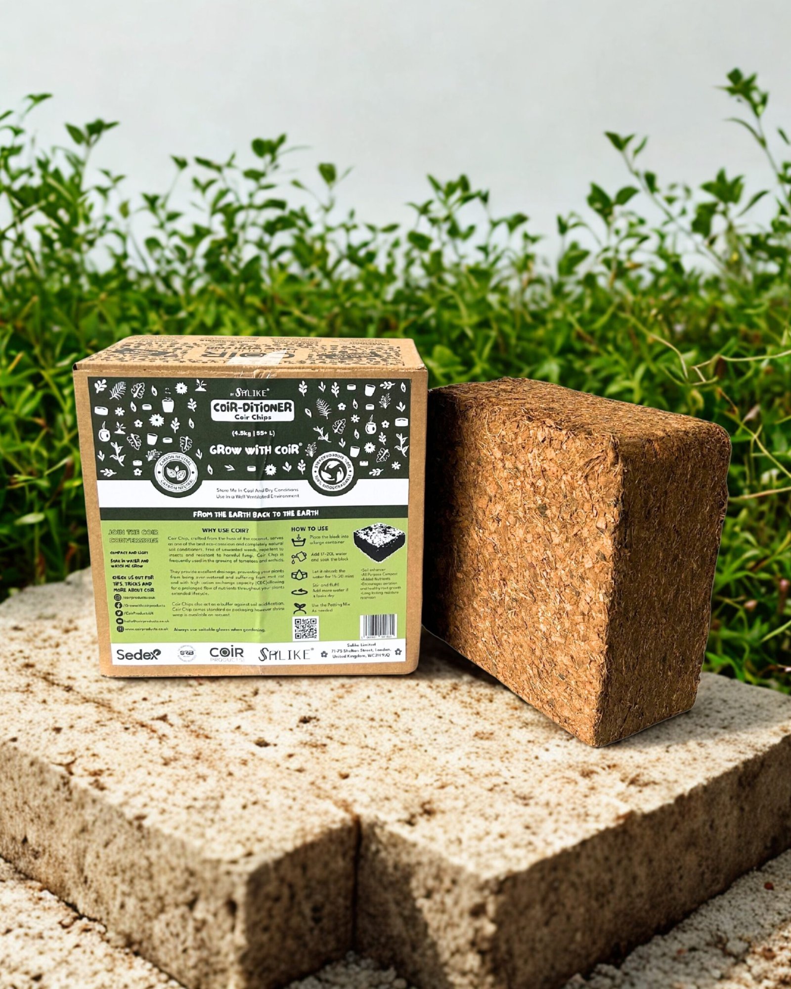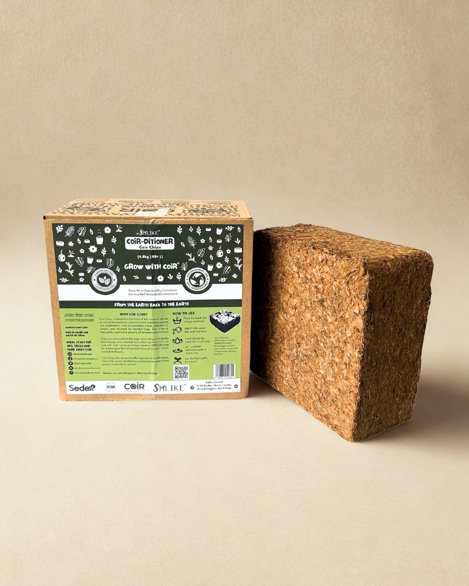 Due to the natural characteristics of coir, all measurements and expansion figures are intended as a guide and may vary slightly. Packaging may appear as shown, or may be supplied in shrink wrap or an alternative box format to ensure fast, safe, and efficient delivery.